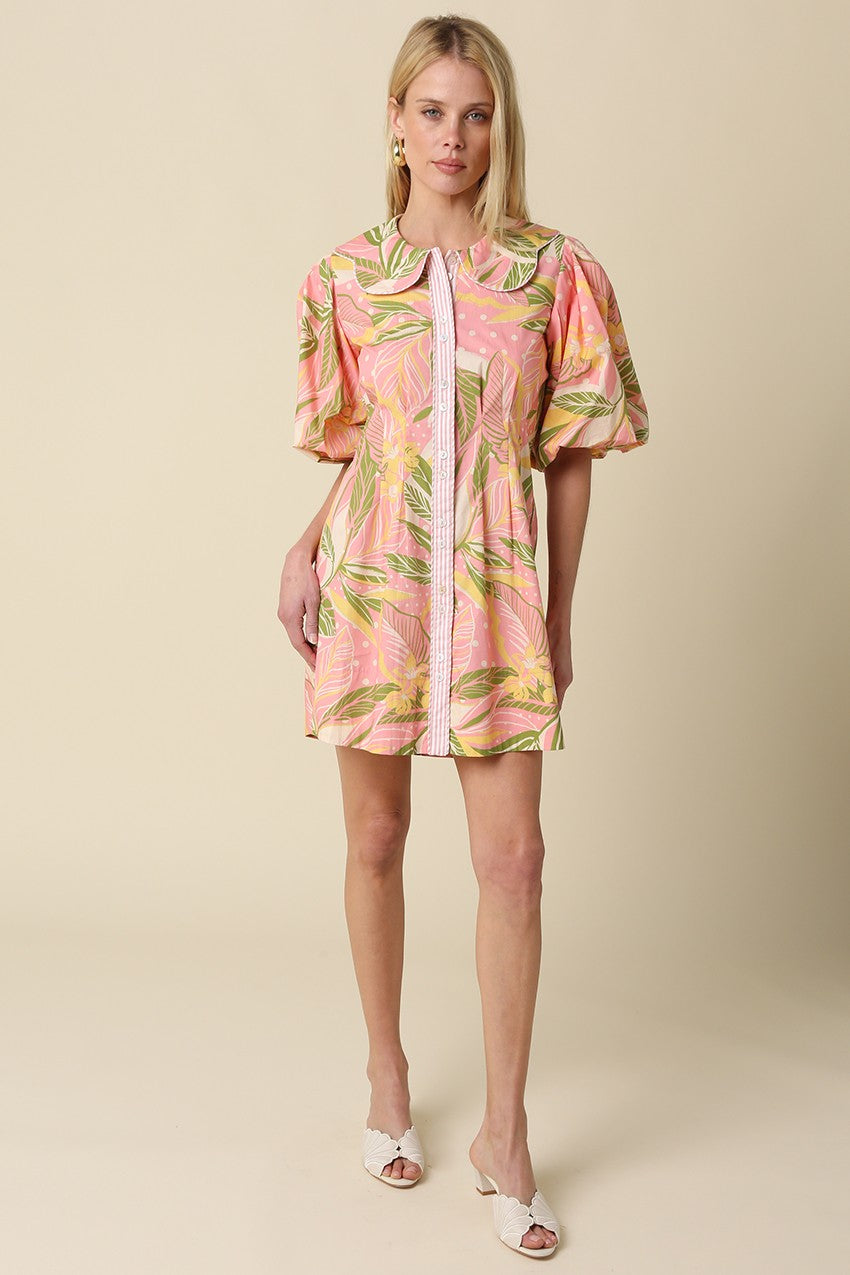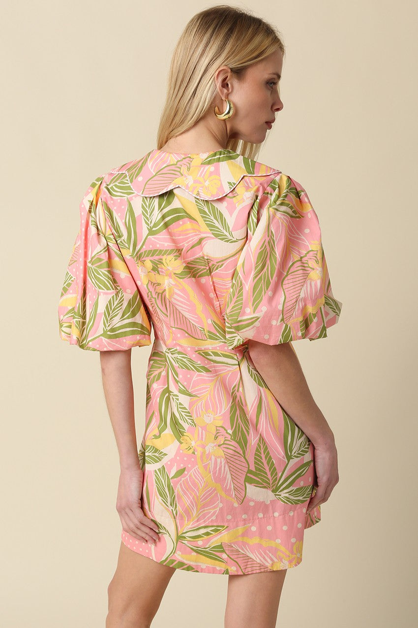 Escape to paradise with this vibrant Tropical Puff Dress, featuring eye-catching coral and green hues that bring the island vibes straight to your wardrobe. The statement puff sleeves add a playful, romantic touch that's perfect for turning heads at any occasion. Whether you're heading to a summer gathering or a casual day out, this dress combines bold tropical flair with flattering silhouette for a look that's as fun as it is fabulous.