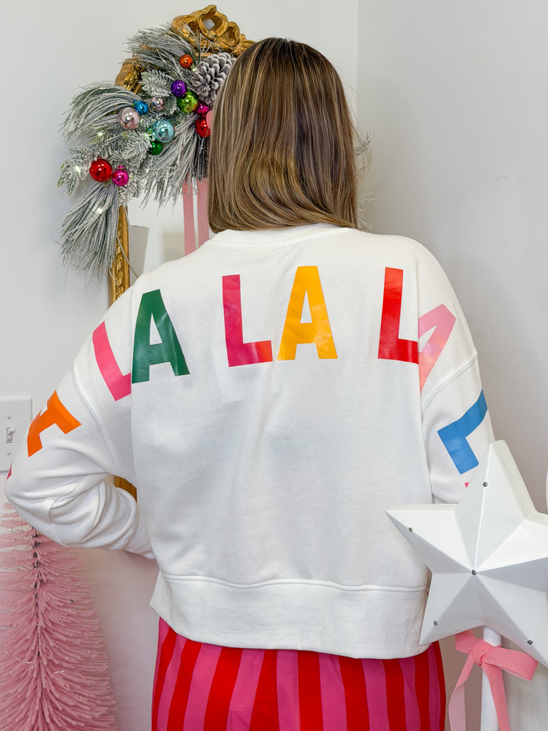 Celebrate the holidays in style with the 'Tis The Season Sweatshirt! This cozy white sweatshirt features a cheerful red "tis the season" on the front and a vibrant, multicolored "fa la la" on the back, bringing festive fun from every angle. Perfect for spreading merry vibes and staying snug during chilly days.